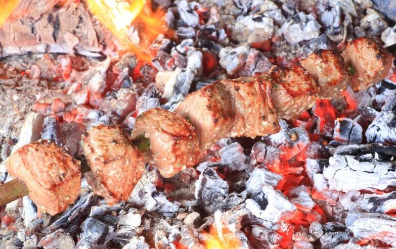 The traditional “espetada” which is beef on a skewer (metal stick or laurel stick), seasoned with salt, garlic and bay leaves. The meat is roasted in a brazier and served directly from the skewer. “Bolo do caco” is the regular Madeiran bread, made with sweet potatoes, flour, baking powder, salt, and wate